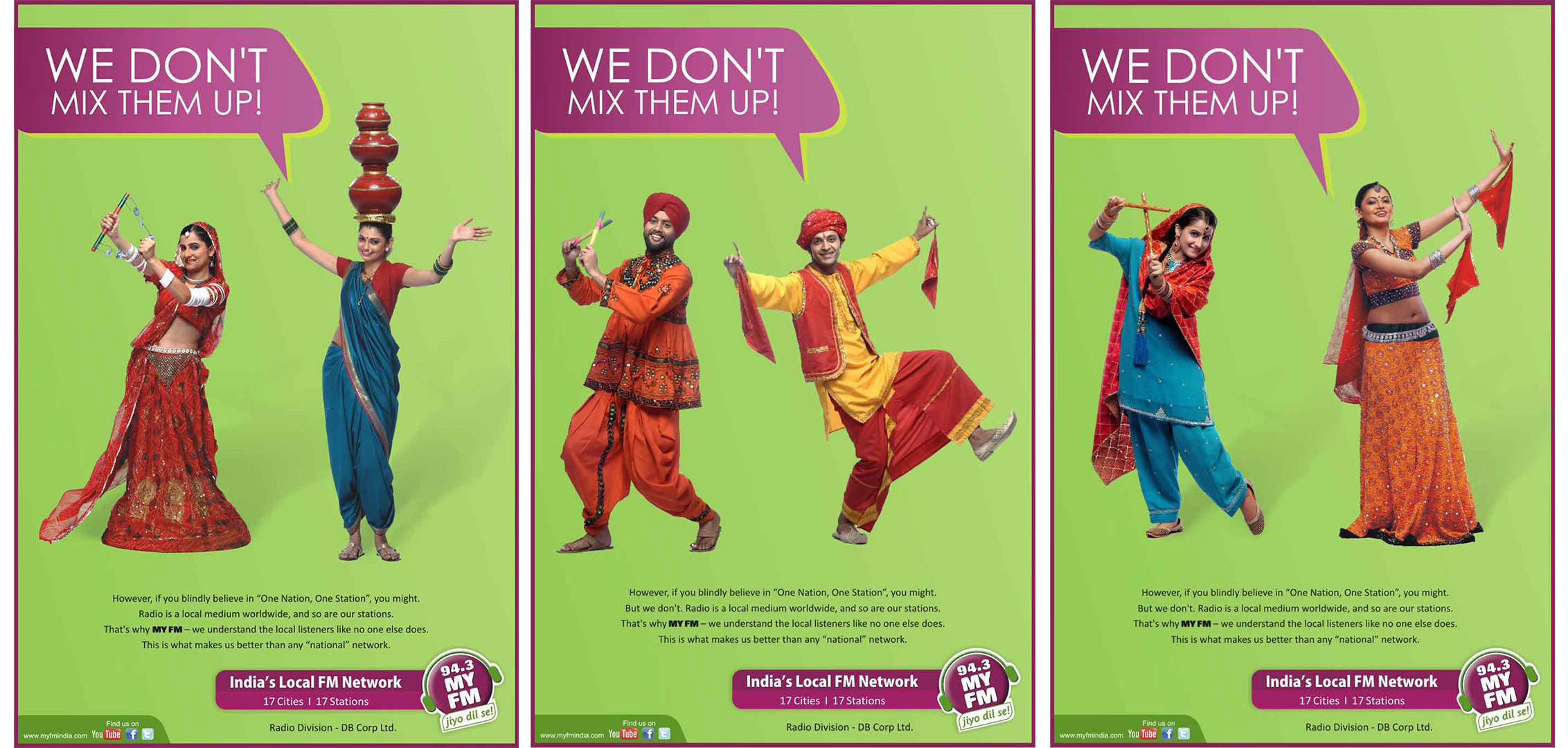 By 2012, the fight for air waves was heating up. Radio stations all across India were busy experimenting with all sorts of mixes, combinations, time-band dedicated genres to figure out each of their sweet spots. My Fm was one of the first to demarcate and defend their home turf. ‘We don’t mix them up’ was the message that was required to be communicated. Already present then in over 6 states with stations in over 21 cities, the brand decided not to have one uniform set of offerings. So each of the stations were fine-tuned to cater to the local tastes.